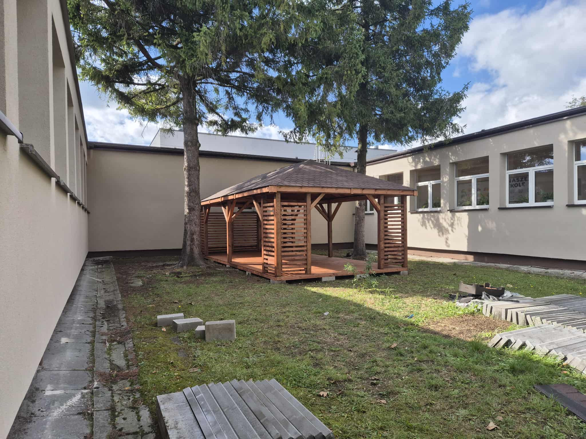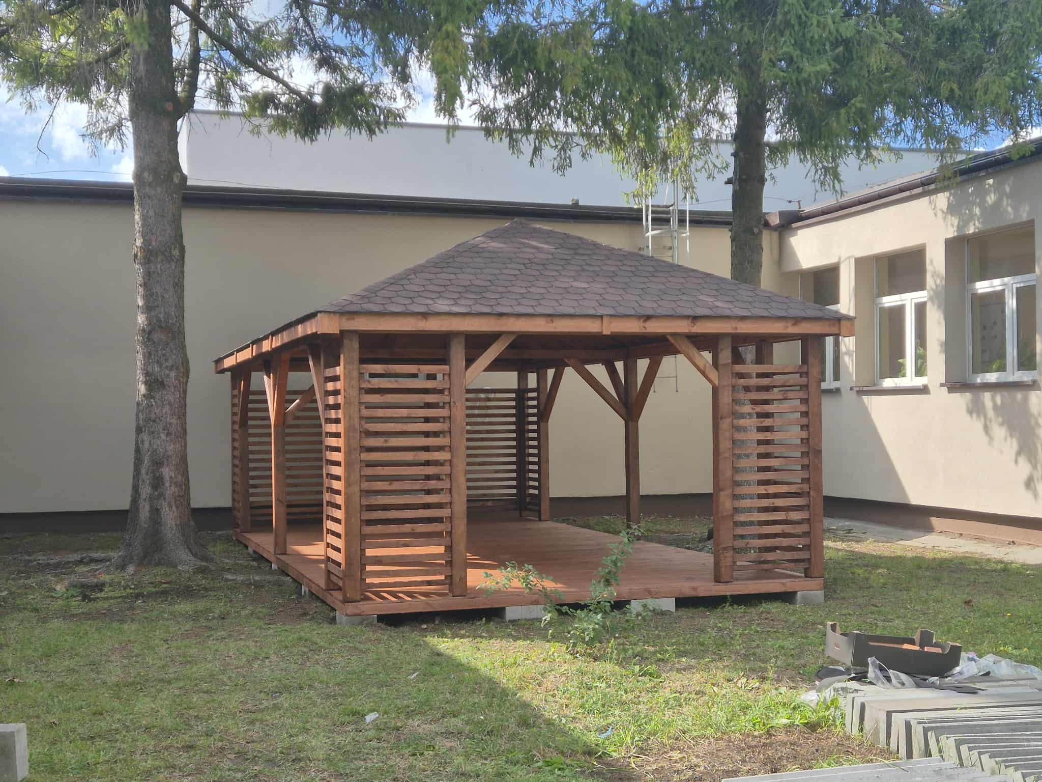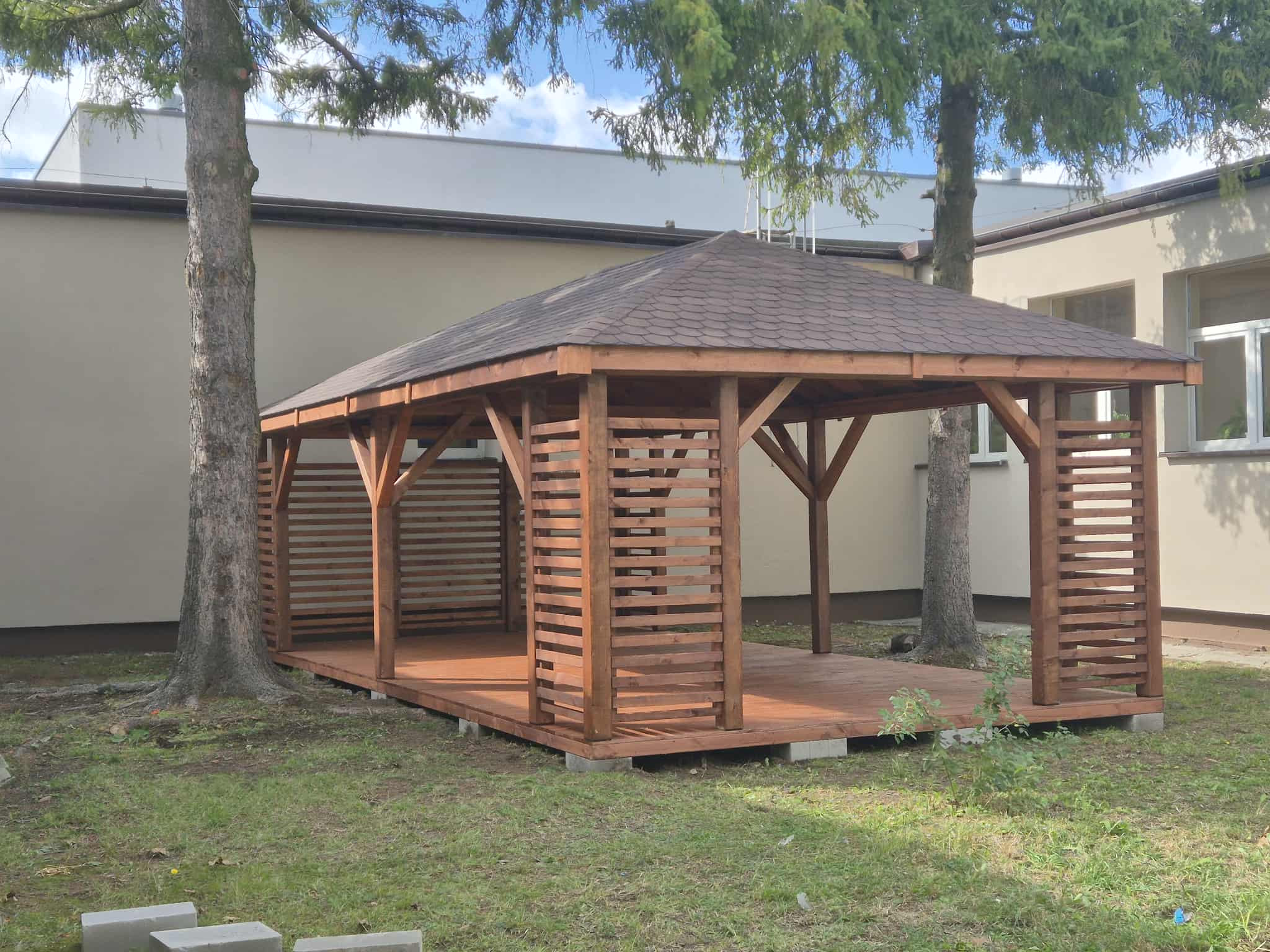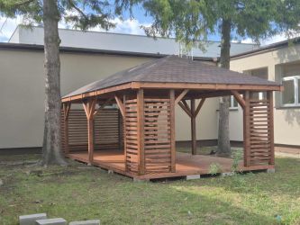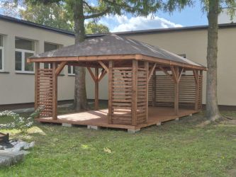- Kompletną altane z czterema zabudowanymi narożnikami (bez podłogi)