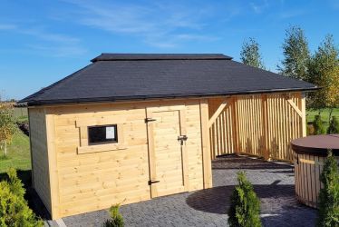 - Domek wykonany z drewna sosnowego suszonego