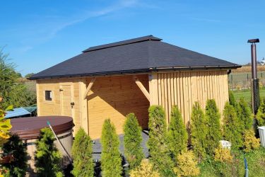 - Pokryty gontem bitumicznym (kolor i kształt do wyboru klienta)