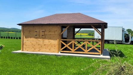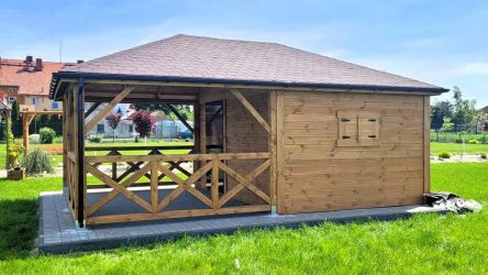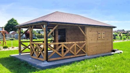 - Domek wykonany z drewna sosnowego