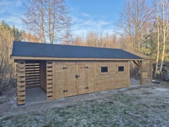 - Domek wykonany z drewna sosnowego