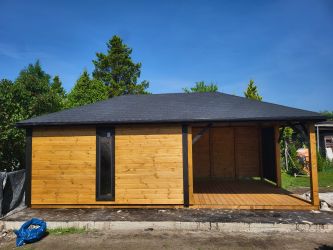 - Pokryty gontem bitumicznym (kolor i kształt do wyboru klienta)