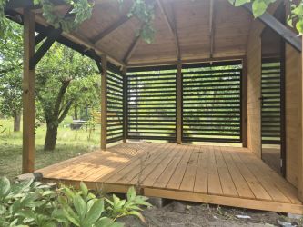 - Płotki w altanie wykonane z kantówki 6x2 cm