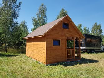 - Domek wykonany z drewna sosnowego I Gatunku