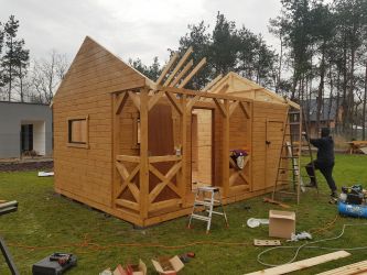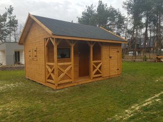 - Domek wykonany z drewna sosnowego