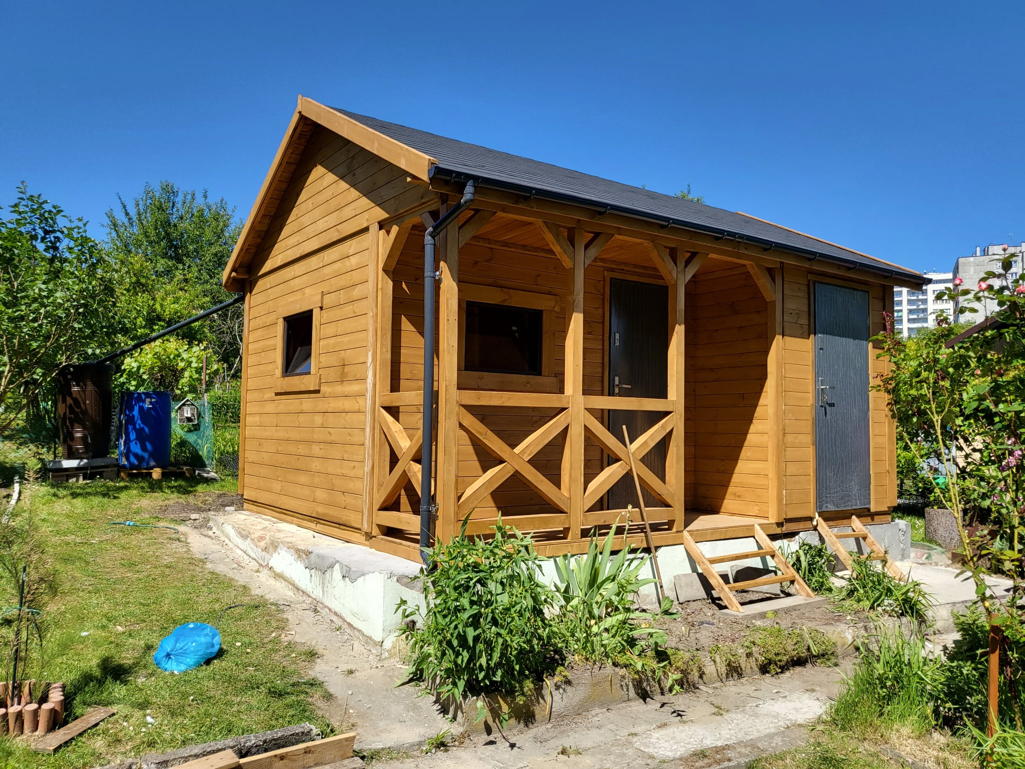 - Domek wykonany z drewna sosnowego