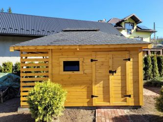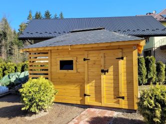- Domek o wymiarach 300 cm x 300 cm plus drewutnia 300 x 100