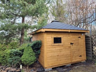 - Wymiary podstawy domku 300 x 300 cm