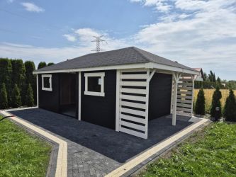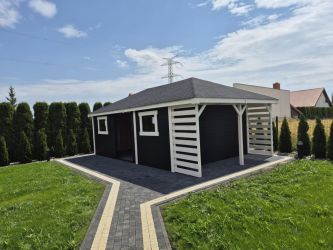- Domek o wymiarach 400 cm x 600 cm plus drewutnia 400 x 100
