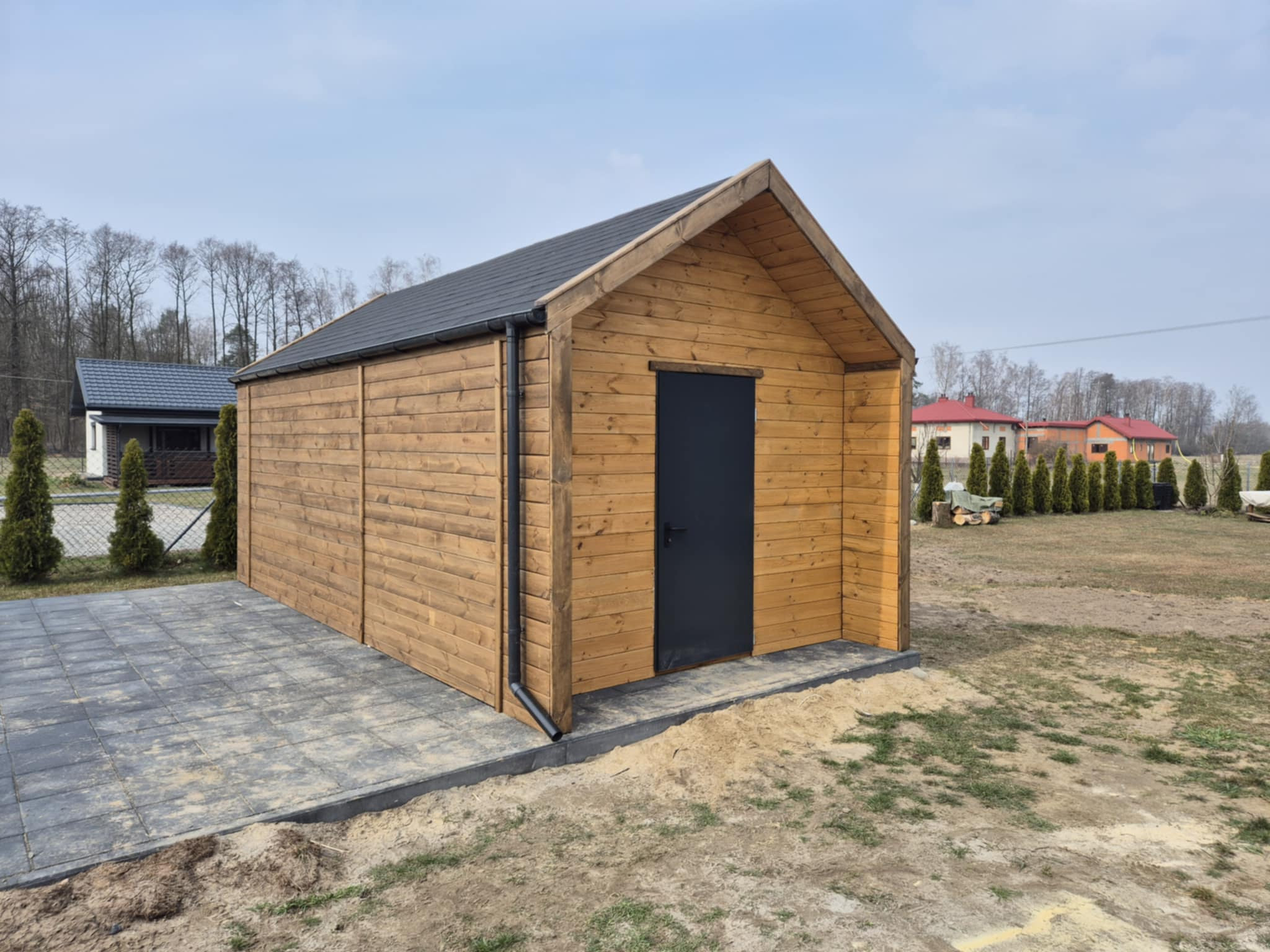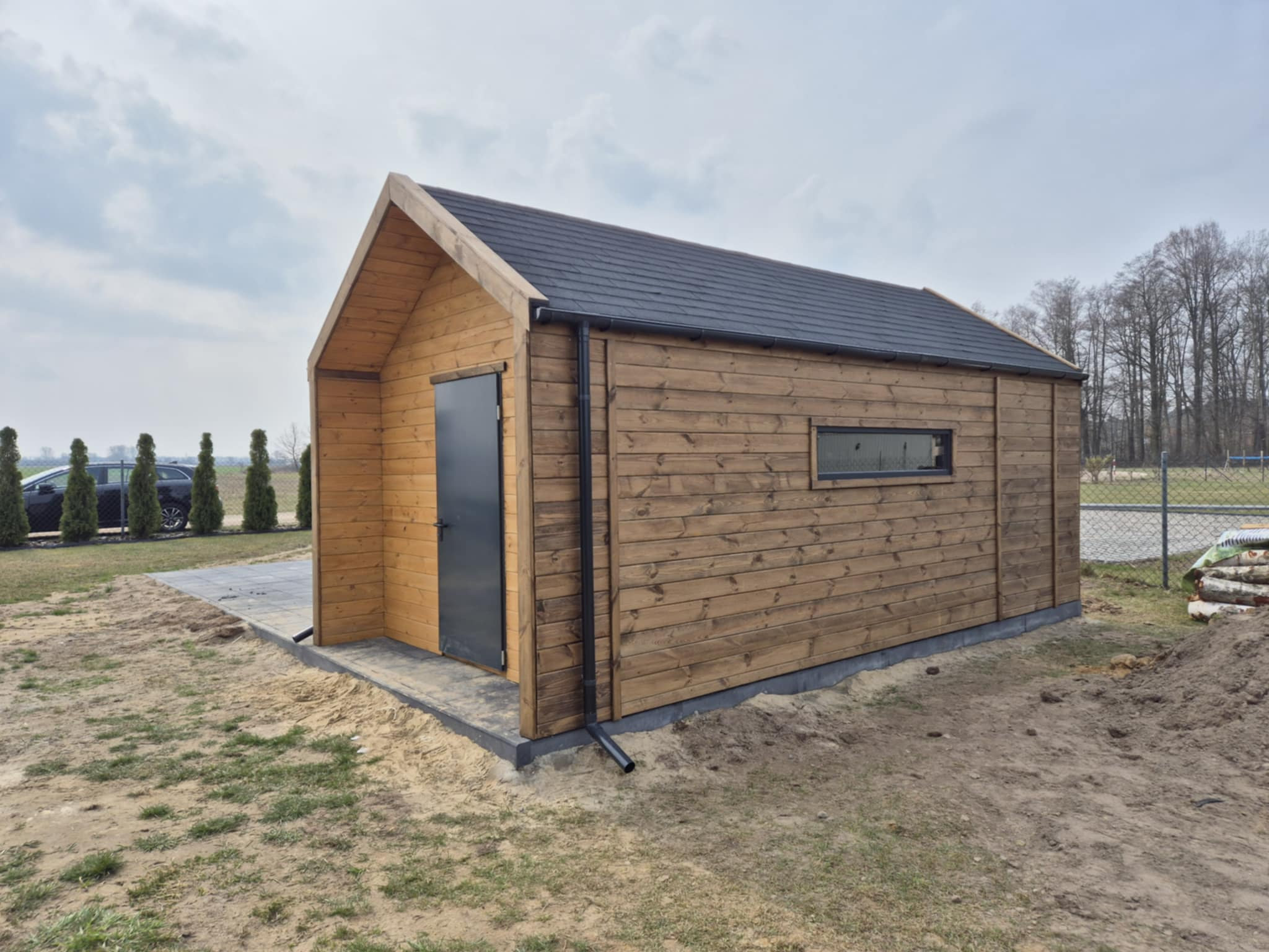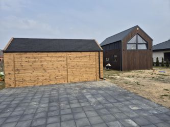 - Domek wykonany z drewna sosnowego