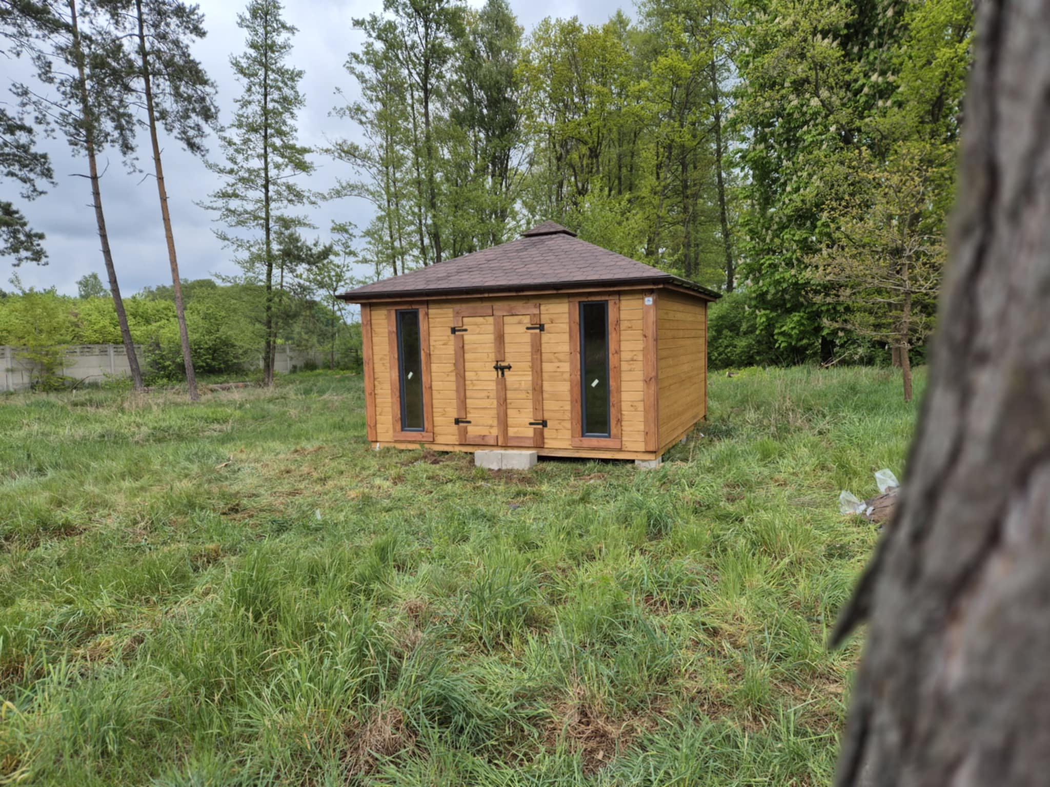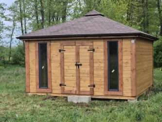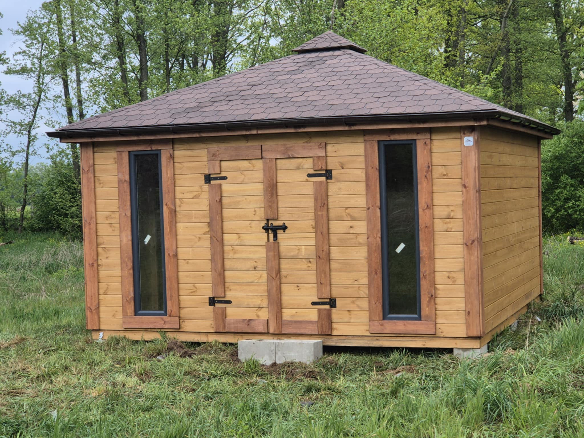 - Wymiary podstawy domku 400 x 400 cm