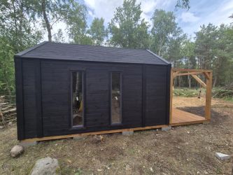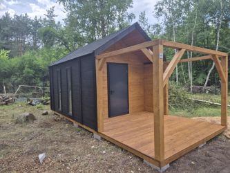 - Domek wykonany z drewna sosnowego