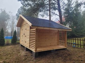 - Domek wykonany z drewna sosnowego