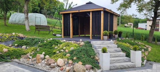 - Kompletną altanę z jednym wejściem