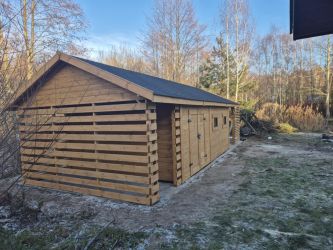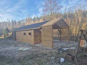 - Domek wykonany z drewna sosnowego