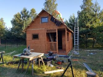 - Domek wykonany z drewna sosnowego I Gatunku