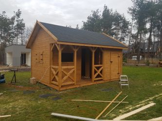 - Domek wykonany z drewna sosnowego