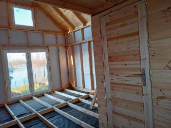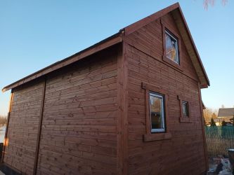 - Ściany domu wykonane z podbitki sosnowej łączonej metodą kanadyjską na pióro-wpust o grubości 20mm