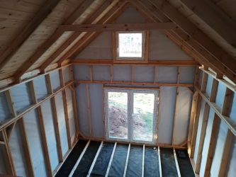 - Ocieplenie ścian oraz dachu wełną mineralną