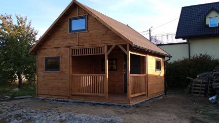 - Domek wykonany z drewna sosnowego I Gatunku