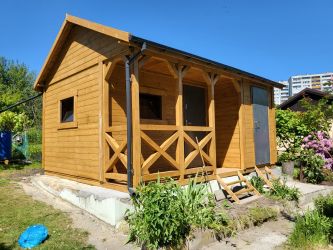 - Domek wykonany z drewna sosnowego