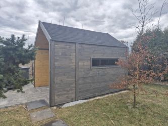 - Domek wykonany z drewna sosnowego