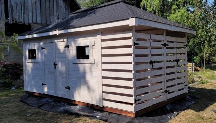 - Drewutnia 3x1m przedzielona na dwa pomieszczenia 150x100cm
