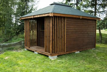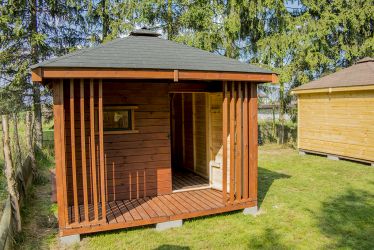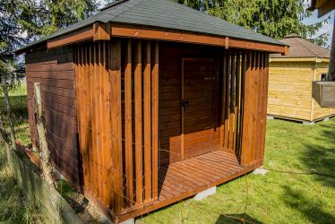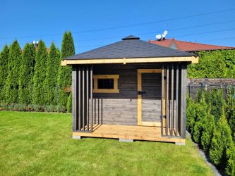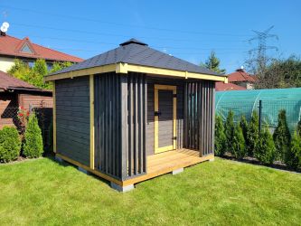 - Domek o wymiarach 300 cm x 300 cm plus taras 300 x 100