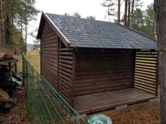 - Domek wykonany z drewna sosnowego